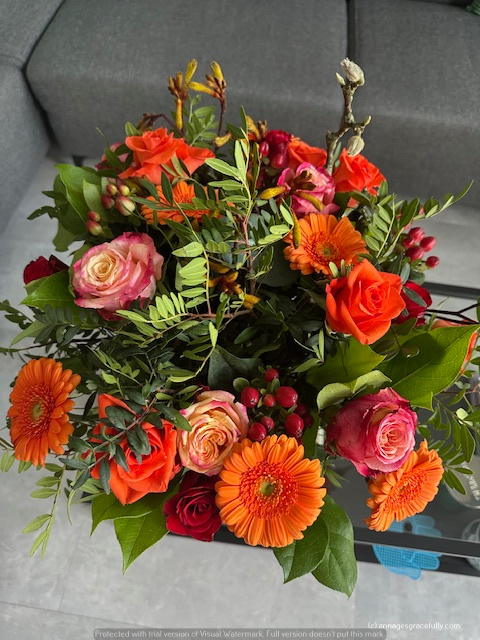 Van mijn dochter kreeg ik een prachtig boeket woensdagavond toen ze kwam eten. Als bedankje voor het oppassen de afgelopen weken. Ze heeft nu haar extra opvangdag dus ik hoef niet meer ‘standaard’ op te passen maar lekker als het zo uitkomt. Was natuurlijk helemaal niet nodig die bloemen want het oppassen was al een kadootje 😉 maar superlief natuurlijk. Zelf haalde ik nog wat roosjes.