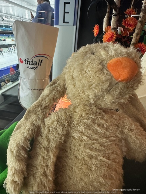 Zaterdag dus op baby visite, wat een klein humpie, een prachtige dochter hebben ze erbij en fijn om ze weer even gezien te hebben. Daarna gingen we door naar Thialf in Heerenveen. Henk-Jan was uitgenodigd (en ik was de plus 1). We keken naar de marathon en kregen een lekker stamppot buffet. Er werd ook voor het goede doel (Ronald McDonald huis) geveild. Daar deden we niet aan mee maar wel een knuffelkonijn gekocht waarvan ook de opbrengst naar de Ronald McDonald gaat. Zo zaten we met een hoop konijnen op de tribune naar het schaatsen te kijken 😊. Op de weg naar huis was het supermistig dat was minder fijn maar we zijn veilig thuis gekomen.