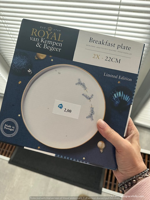 Vrijdag was ik in de ochtend even naar de markt gegaan en in de middag stond er een afspraak bij de schoonheidsspecialiste op het programma. Ik was ook nog even bij de AH wat boodschappen doen en daar hadden ze deze mooie keramieke borden voor heel weinig. Ik moest echt hoognodig wat nieuwe ontbijtbordjes hebben (dacht er al over om eens bij de kringloop te gaan kijken) want die ik nu heb zijn deels van glas (en zitten vol met krassen en de kleur is er zo goed als af) en nog 2 porseleinen bordjes die ook ruim 20 jaar oud en wat beschadigd zijn. Het zijn wel wat ‘kerstige’ bordjes maar who cares hahaha ik heb weer 6 mooi bordjes voor een euro per stuk en kan dus weer ruim 20 jaar vooruit.