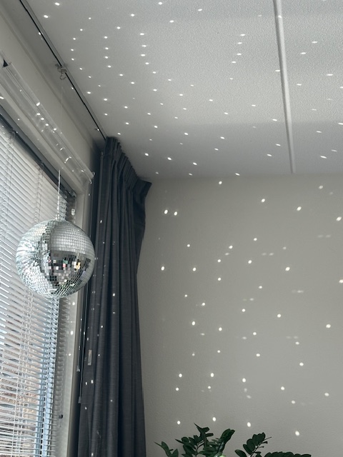Doordat de zon zich even liet zien en op mijn discobal viel had ik zo’n mooie lichtval op mijn muren. Kan ik echt van genieten 😊.