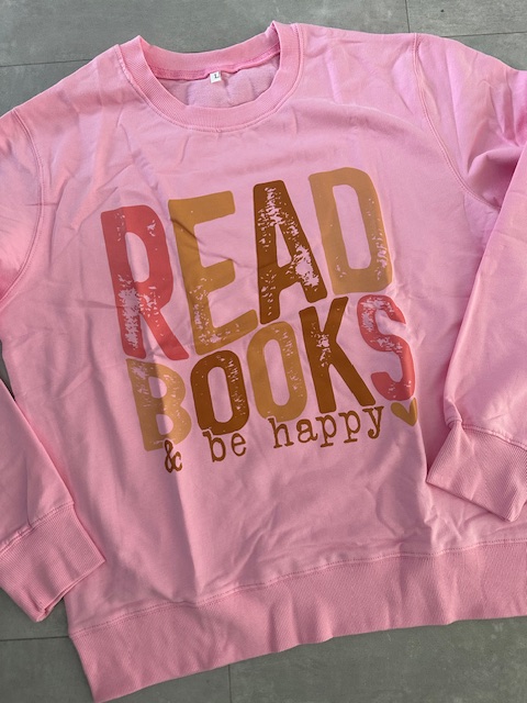 Woensdag kwamen ook mijn twee bestelde sweaters binnen (even door de kreukels heenkijken aub). Ik had nog wat verjaardagsgeld en besloot deze twee leukerds helemaal in boekenthema te bestellen. Ze zijn niet heel dik dus ideaal voor deze tijd van het jaar. Helemaal blij mee.