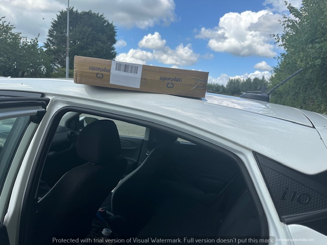 Ik kreeg ook een computer mee die ik even moest afleveren op de andere vestiging. Ik had hem op het dak van mijn auto gelegd toen ik nog even met een collega stond te kletsen op de parkeerplaats. Neeeeee 😊 gelukkig niet vergeten van het dak te halen en weg te rijden haha het zal je gebeuren zeg!