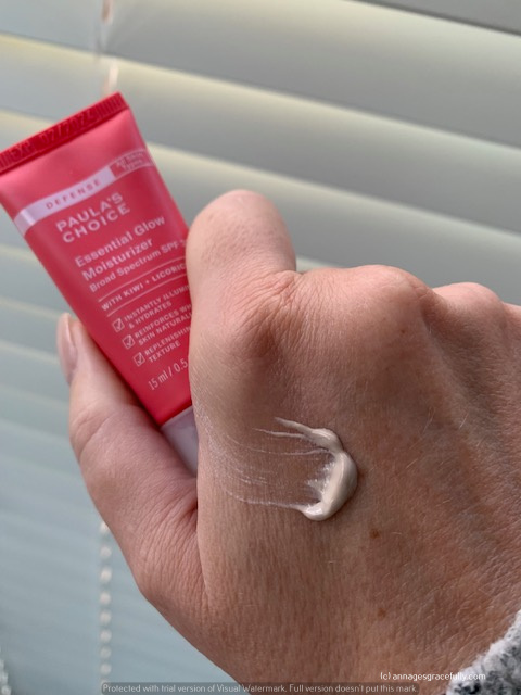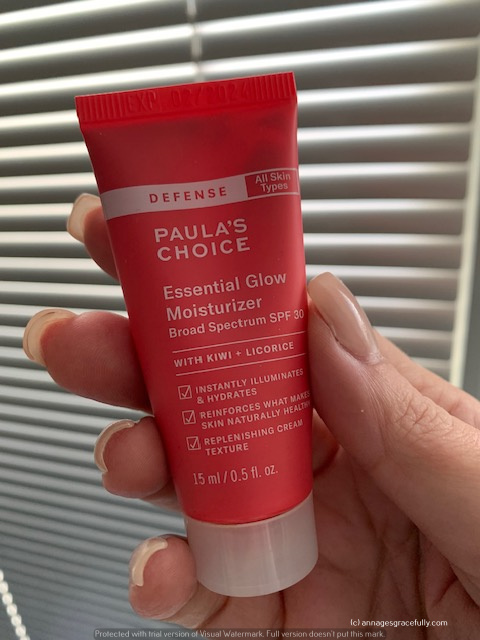 Ik vertel je vandaag over mijn bevindingen met de Essential Glow Moisturizer van Paula’s Choice. Volgens mij zat deze of in de adventskalender of in de cosmaniabox maar ik weet niet meer precies in welke. Doet er ook verder niet toe denk ik. De travelsize bevat 15ml dus een mooie inhoud om toch zo’n 3 weken te proberen. De moisturizer bevat ook nog een SPF 30.