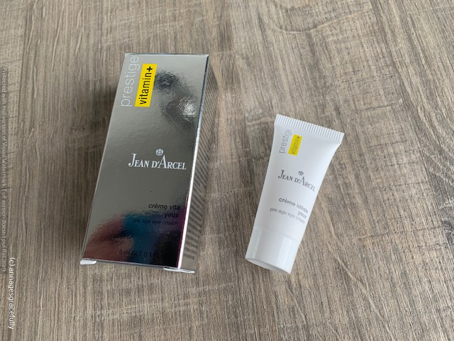 Een oog crème dus die je zowel in de avond als overdag kunt gebruiken. Op het doosje lees ik dat er vitamine C, A en E in zit aangevuld met werkzame pre- en antiaging stoffen. Fijne lijntjes moeten minder zichtbaar worden als ook donkere kringen en wallen.