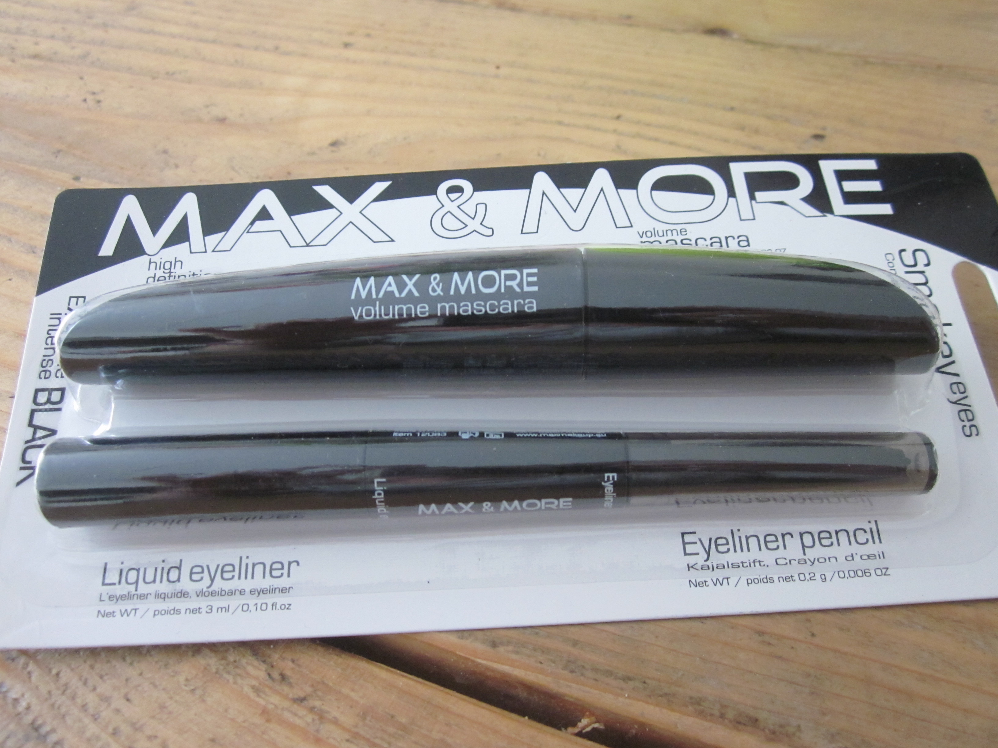 Bij de Action nam ik dit oogsetje mee van het eigen merk Max & More. Ik heb al een liquid eyeliner van Max en die is echt prima (kost geloof ik EUR 0,69 per flesje) dus was ik benieuwd naar dit trio.