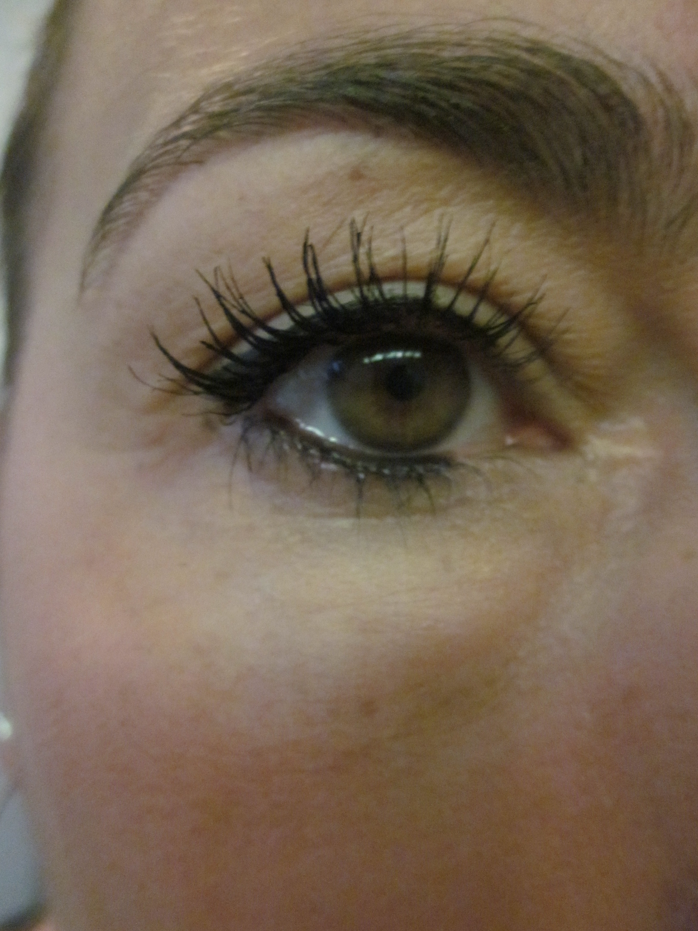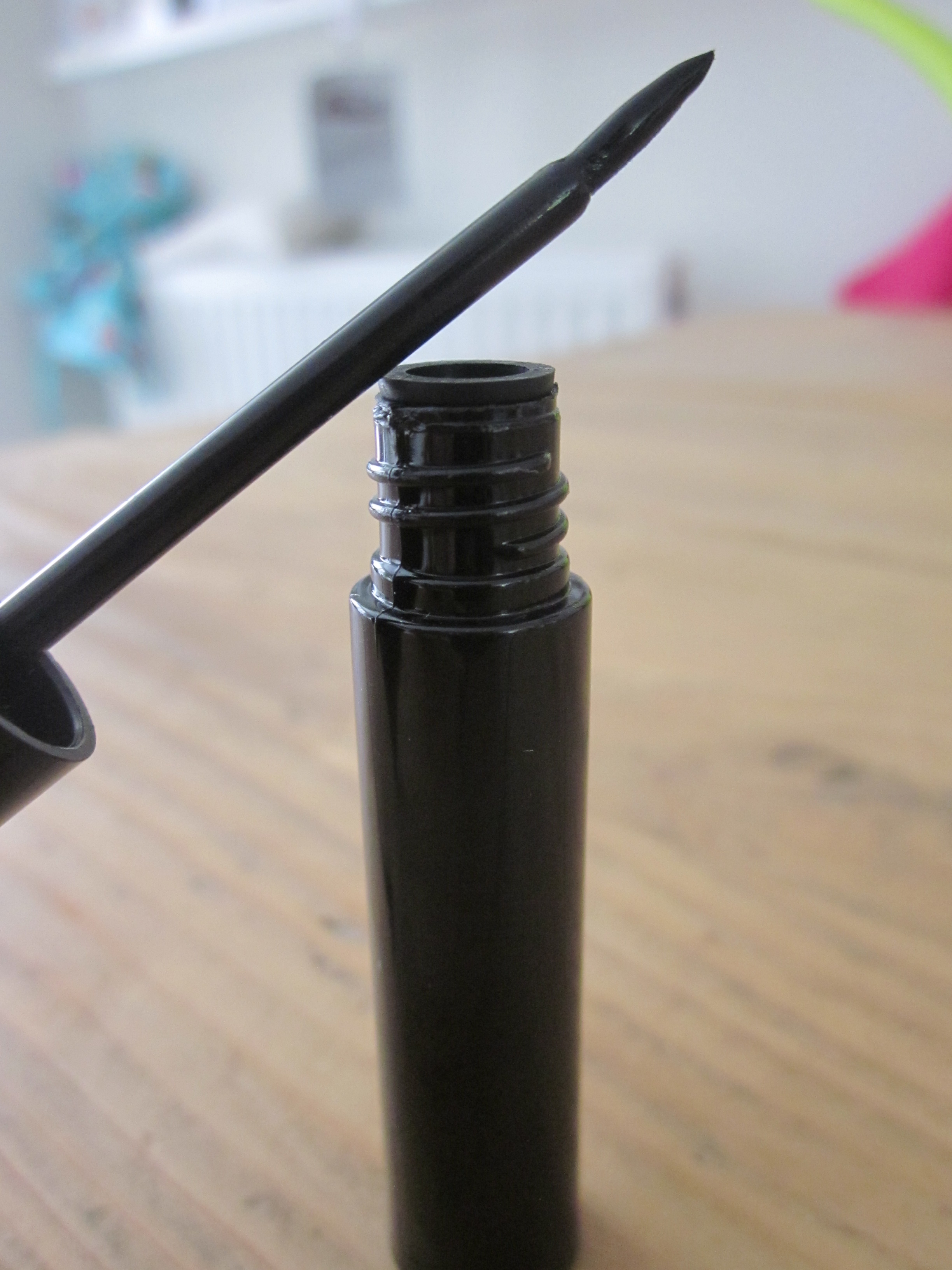 Het setje bestaat uit een Mascara, een liquid eyeliner en een eye pencil. Ik heb de producten uitgeprobeerd en ben behoorlijk enthousiast. De liquid eyeliner is zoals gezegd prima. Dit blijft ook prima de hele dag zitten en brengt gemakkelijk aan (wel een beetje lastig te fotograferen – zie oogfoto’s hieronder – maar hopelijk krijg je wel een beetje een beeld).