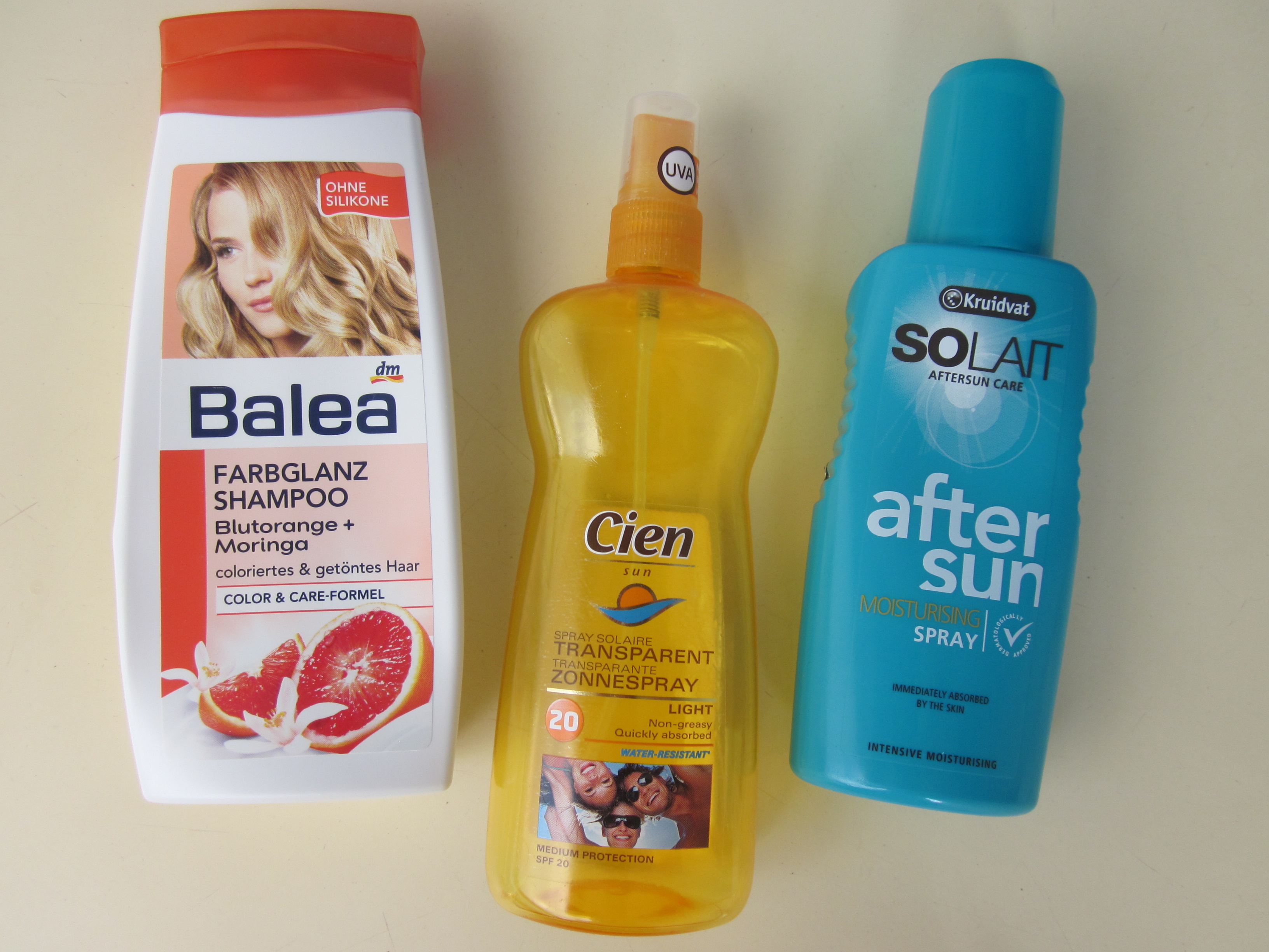 Op vakantie maakten we een fles shampoo leeg (wederom van Balea). Een shampoo die de kleur van je haar beschermt. De geur is echt heerlijk –Bloedsinaasappel en Moringa- echt een aanrader. De shampoo bevat geen siliconen en kost slechts EUR 0,65. Deze zal ik zeker opnieuw kopen als ik weer bij de DM ben.