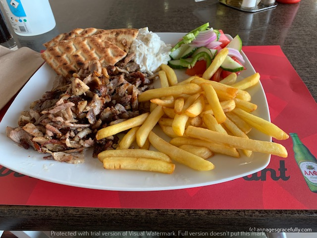 Ik had een all-in geboekt dus hoefde niet na te denken over waar ik zou eten. Het eten was allemaal dik in orde en heb uiteraard een paar keer heerlijke Gyros genomen. Ook fijn dat er niet van die automaten siroop limonade was maar gewoon flesjes Cola, fanta etc en heerlijke Lipton Ice tea Green. Het ontbijt was in buffet vorm dan deed je handschoentjes aan en kon je gewoon pakken. De lunch en het diner waren gewoon á la carte dus kon je bestellen en dan kwam je bordje met heerlijks voor je neus.