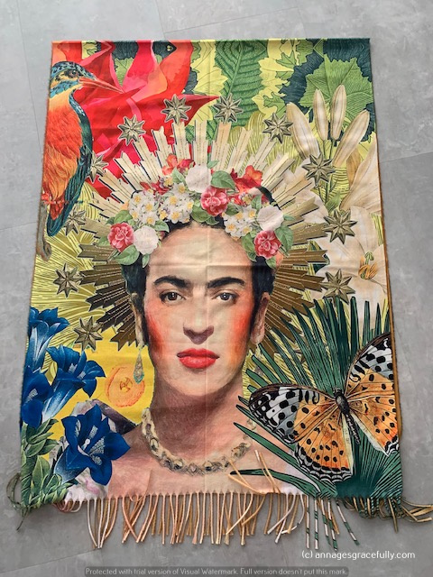 Op de dinsdagavond is er op de NPO een hele mooie serie over Frida Kahlo die wordt gepresenteerd door Jeroen Krabbe. Hij verteld echt haar levensverhaal, het verhaal achter haar schilderijen echt heel tof. Ik kende haar wel van gezicht en dat ze schilderes was maar nooit echt iets over gelezen ofzo. Aanrader die serie (denk wel dat hij nu zo’n beetje is afgelopen) maar kijk hem even terug. Toen ik dan ook op de markt deze sjaals zag vond ik het tof om er 1 mee te nemen. Ze hadden een hoop verschillende dus de keuze was nog moeilijk.