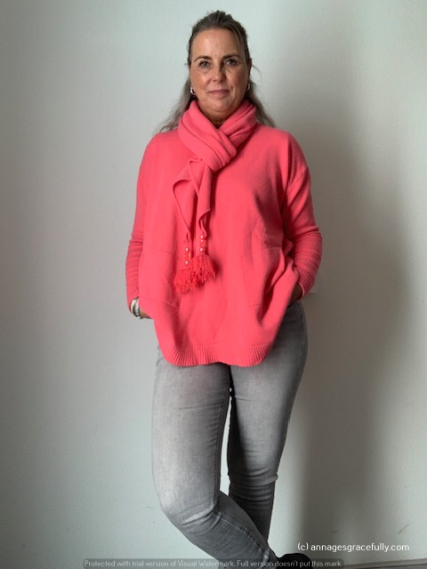 Ik was weer helemaal van de herfst-truien deze week. Wel mijn leuke nieuwe blouse aan, hoe tof is deze? En die achterkant…. Love it! Ik had hem al even in huis maar voor mijn vakantie was het nog zo warm dus toen was het er geen weer voor. Nu wel dus je zult hem regelmatig voorbij zien komen. Verder lekker truien en sjaals deze week.