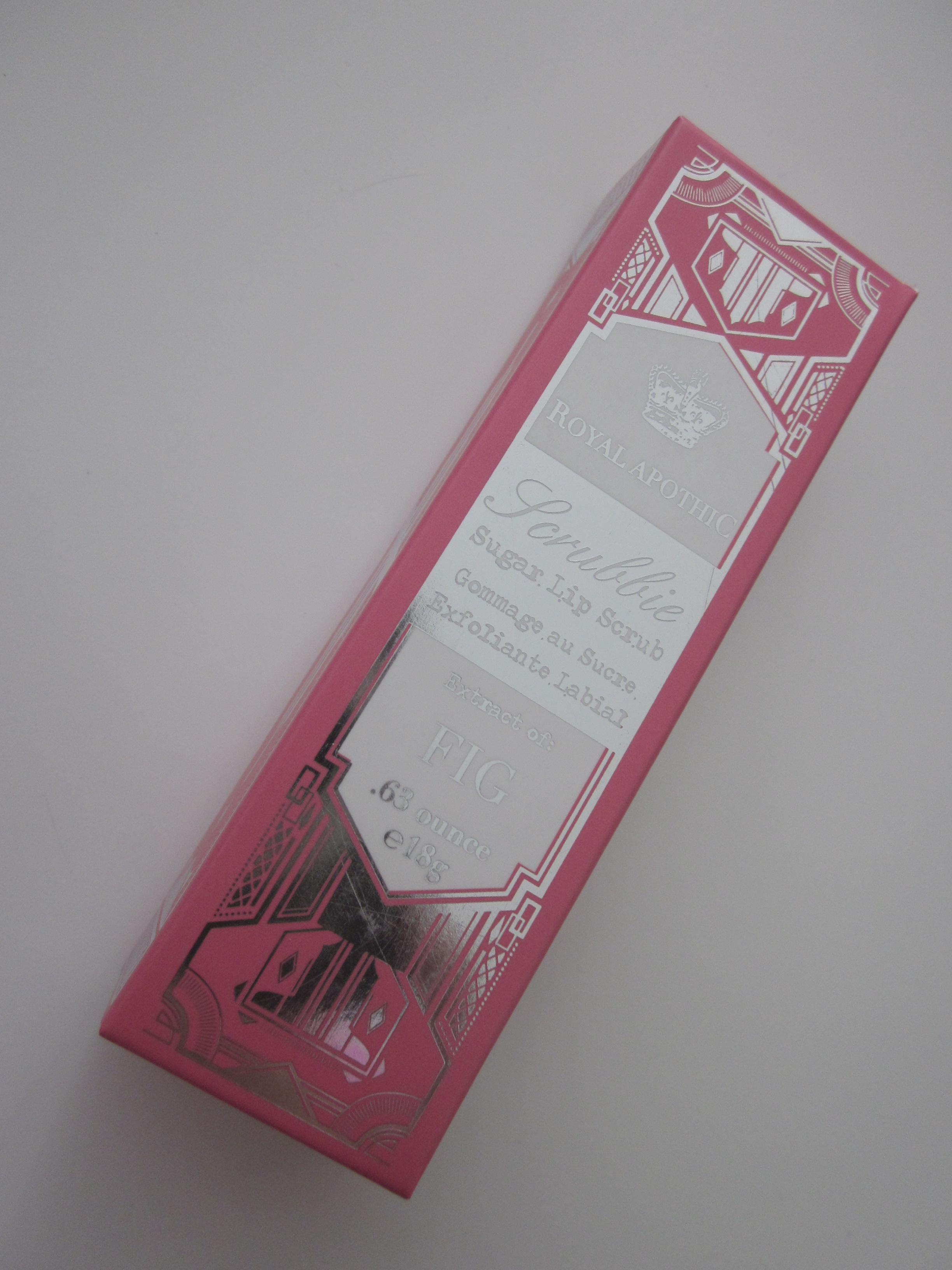 Van Royal apothic -een Amerikaans merk- zit er een lip-scrub in de box in een lekker roze kleur. De geur is erg sterk en ruik je al door de verpakking heen. Niet helemaal mijn ding die geur. Volgens de verpakking zou het Vijg zijn maar dat ruik ik er niet helemaal in terug. Dit tubetje kost EUR 12,50. De korreltjes zijn duidelijk aanwezig en zorgen voor kiss-proof lippen.