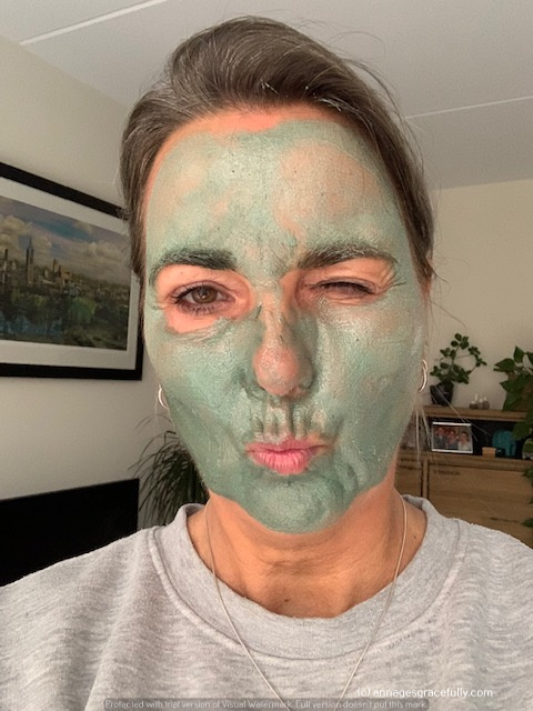 Het is wel echt een ‘scrub’ ik vind het korreltje vrij heftig en behoorlijk ‘scherp’ voorzichtig aanbrengen dus. In de categorie Hulk 😊 kun je zo naar een verkleedfeest want hij is lekker groen haha. Ik masseer hem heel voorzichtig op de huid. Hij is als je hem uit de tube haalt donkergroen maar tijdens het aanbrengen droogt hij razendsnel en gaat hij naar lichtgroen. Ongeveer 2 minuten inwerken en dan spoel ik het goed af met warm water.