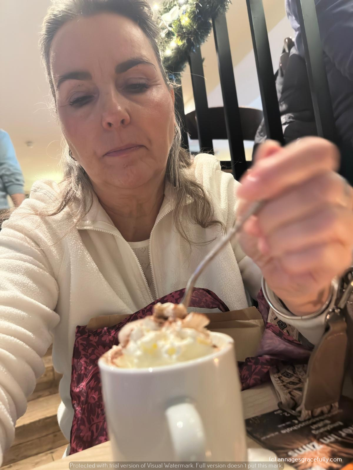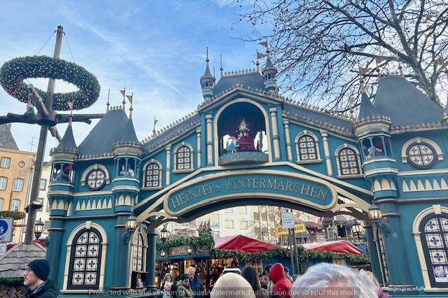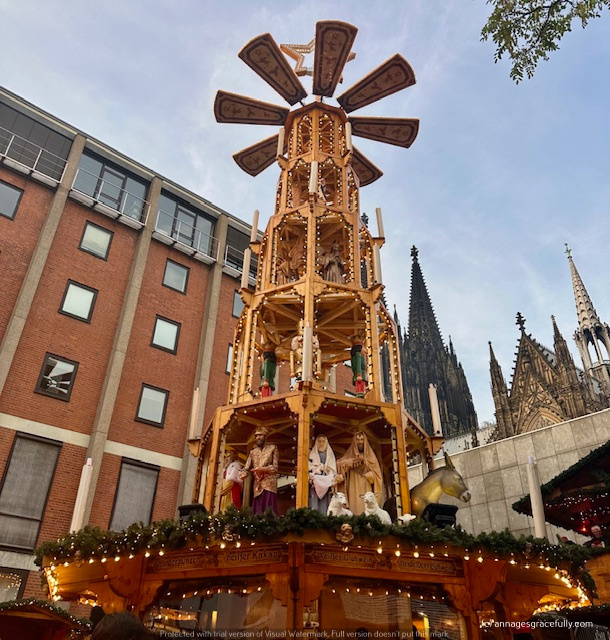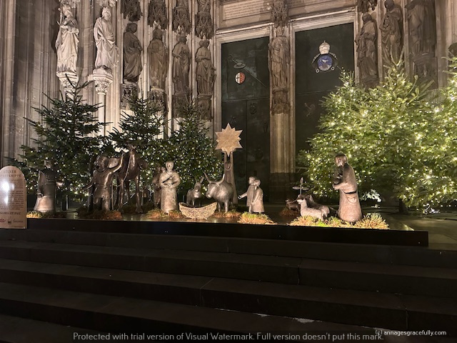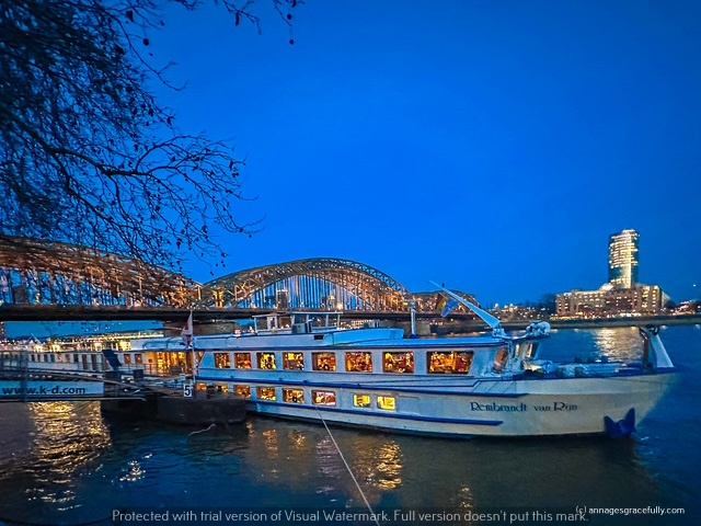 Na de eerste lunch konden we van boord en we lagen aangemeerd echt recht tegenover de Dom in Keulen dus je stapte de boot af en zo de kerstmarkt op. We hebben een heerlijke middag rond gebanjerd op de verschillende kerstmarkten en omdat we al een lunch hadden genoten echt geen trek in al die verleidelijke kraampjes met (vette) hap op de kerstmarkt. Op de boot weer een heerlijke avondmaaltijd en ook nog even toen het donker was mooie foto’s gemaakt natuurlijk want met al die lichtjes is het echt heel sfeervol.