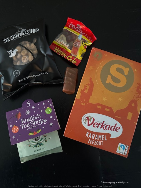 Van het werk kregen we deze week onze sinterklaastraktatie. Het is altijd een doosje vol met lekkers. Ik heb de hele doos maar naar mijn ouders gebracht want als je verder leest zie je dat ik ook al via mijn adventskalenders het nodige te snoepen heb de komende periode 😊