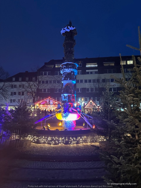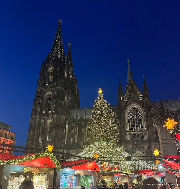 Na de eerste lunch konden we van boord en we lagen aangemeerd echt recht tegenover de Dom in Keulen dus je stapte de boot af en zo de kerstmarkt op. We hebben een heerlijke middag rond gebanjerd op de verschillende kerstmarkten en omdat we al een lunch hadden genoten echt geen trek in al die verleidelijke kraampjes met (vette) hap op de kerstmarkt. Op de boot weer een heerlijke avondmaaltijd en ook nog even toen het donker was mooie foto’s gemaakt natuurlijk want met al die lichtjes is het echt heel sfeervol.